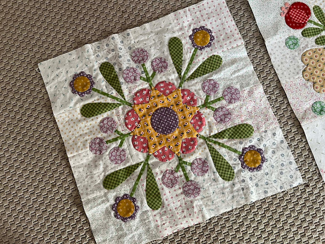 DeleteWhat a beautiful quilt and an equally beautiful setting for the photo. Very much looking forward to seeing A Ribbon Runs Through It finished - another beauty! Another one guilty of SFSC UFOs here .... the one that had the Egyptian scarab beetle sticks in my mind ... and the vegie patch ... fancy carrots ..... etc .... Determined not to add Winter Twist to the pile, so planning on stitching Manor Marquis today before going out to lunch with the sewing girlfriends for a belated Christmas/New Year/birthday celebration.